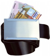 Lämna plånboken hemma! Läderbälte med perfekt förvaring av kreditkort, passerkort och körkort. Bredd 40mm, längd 120cm.